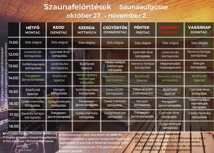 Ez a szaunaprogram igazi kuriózum! A felöntésen alkalmazott krémet saját bükfürdői gyógyvizünk felhasználásával fejlesztettük ki.